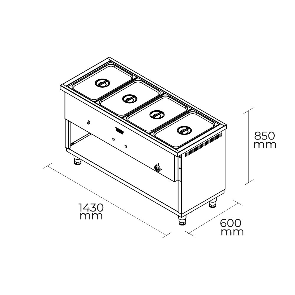 - Capacidad: 4 depósitos GN 1/1 de 20 litros c/u