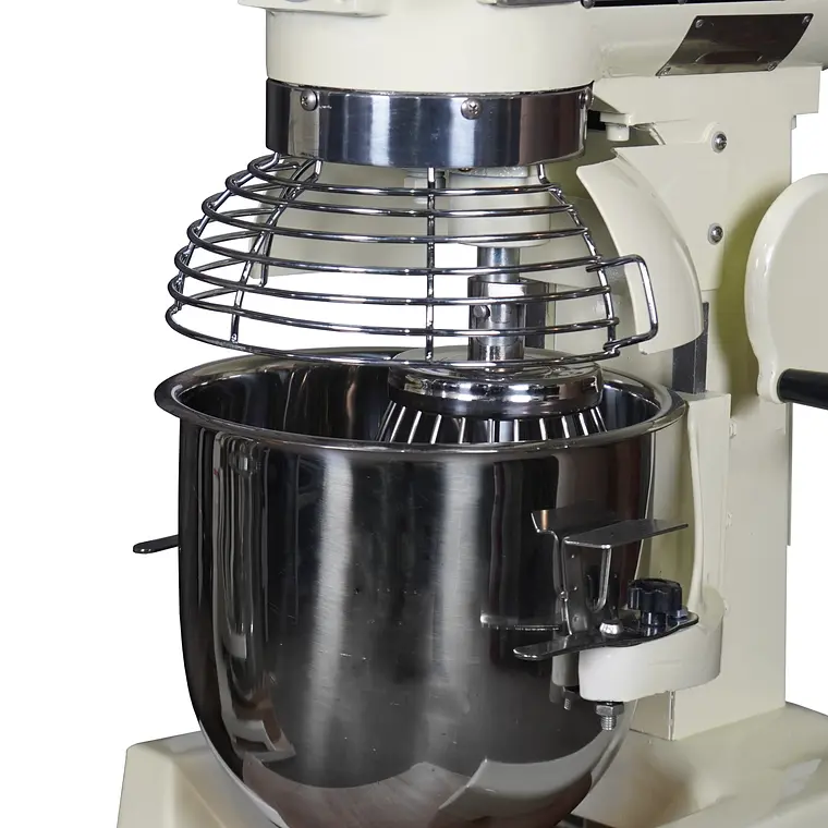 Gracias a su sistema de transmisión por engranaje, esta batidora ofrece un funcionamiento estable y eficiente, ideal para trabajos continuos y de alta exigencia. Su estructura fabricada en hierro fundido le entrega gran solidez y estabilidad, mientras que su bowl de acero inoxidable de 20 litros proporciona resistencia, higiene y facilidad de limpieza, aspectos fundamentales en entornos gastronómicos profesionales.