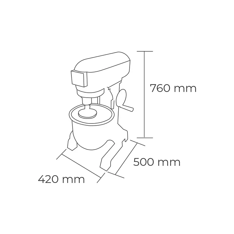 Cuenta con tres velocidades de trabajo de 105, 180 y 425 rpm, permitiendo adaptarse a distintas preparaciones como cremas, merengues, rellenos y masas ligeras. Además, incorpora sistema de seguridad de fijación del bowl al soporte y manilla de elevación, lo que facilita un manejo más cómodo, seguro y práctico durante la operación diaria.