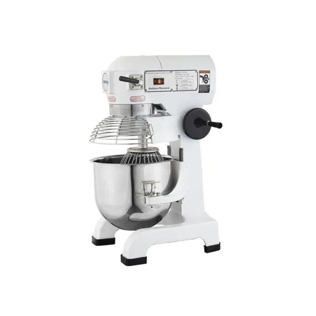 Además, incluye lira, globo y gancho, accesorios esenciales para trabajar mezclas suaves, cremas, claras y masas densas con mayor eficiencia. Su bowl reforzado con rejilla de seguridad abatible, junto con la manilla rotatoria para subir y bajar el bowl y su sistema de ventilación, aportan mayor seguridad, comodidad de uso y protección del equipo durante jornadas de trabajo intensivas.