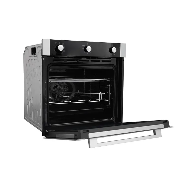 Este horno eléctrico empotrable de 60 litros está diseñado para entregar una cocción versátil y uniforme en el uso diario. Incorpora 8 funciones de cocción, temporizador con alarma, encendido análogo y control mediante 3 perillas independientes para funciones, tiempo y temperatura, lo que facilita una operación práctica e intuitiva. Además, cuenta con iluminación interior mediante 2 luces halógenas G9 de 25 W cada una, permitiendo una mejor visualización de las preparaciones durante la cocción.